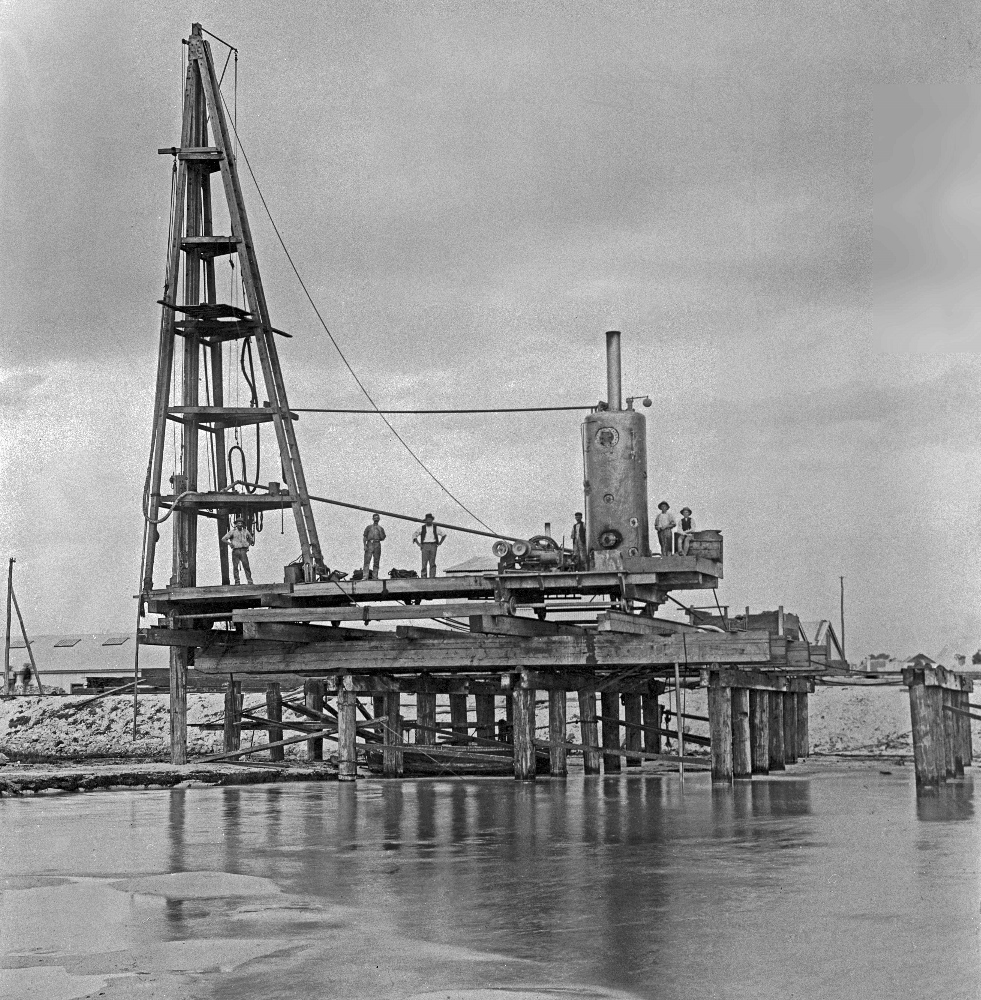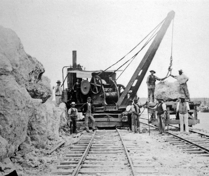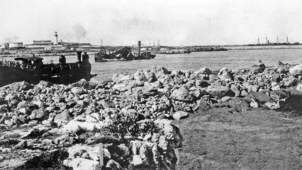 Work began in 1892. The first major task involved the construction of the North and South moles, using rock quarried from Rocky Bay (Swan River) and Boya (south side of Greenmount Hill in the Mundaring Shire).